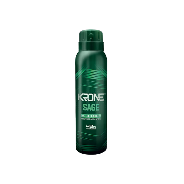 Krone Attitude Sage Body Spray has a crisp, herbal fragrance. Designed for lasting freshness and confidence. Ideal for everyday wear. Buy Krone Attitude Sage Body Spray 150ml and stay cool all day!