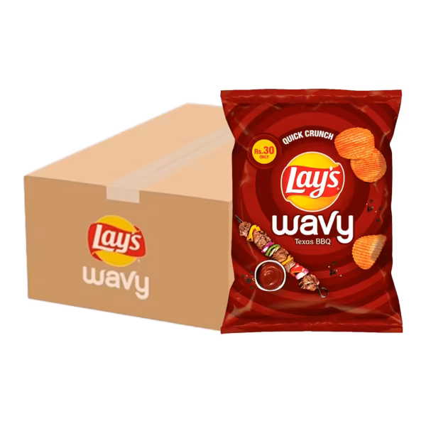 Lay's Wavy bbq offers a smoky, savory BBQ flavor that perfectly complements its wavy texture. The deeper ridges of these chips hold more of the delicious bbq seasoning. Order Lay's Wavy BBQ Rs. 30 Carton (48 Packs) and enjoy the smoky, savory goodness with every wave!