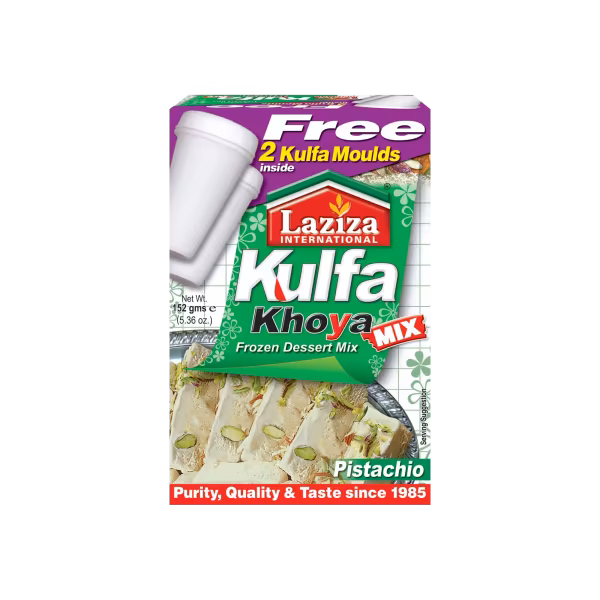 Answer: Laziza Kulfa Mix Pista 152g is used to make traditional pistachio kulfa, a rich frozen dairy dessert similar to kulfi.