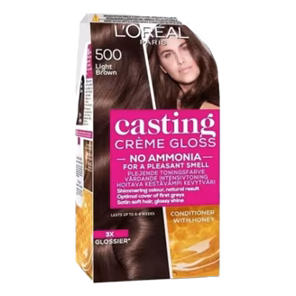 L'Oreal Casting Light Brown Hair Color offers ammonia-free shine and rich tones. Blends greys beautifully and leaves hair soft. Get L'Oreal Casting Light Brown Hair Color 500 and enjoy vibrant, glossy colour!