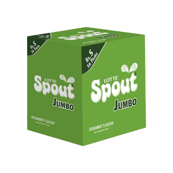 Lotte Spout Spearmint is a refreshing minty gum for long-lasting freshness. Convenient and perfect for on-the-go. Buy Lotte Spout Spearmint Box Rs. 5 (Pack x 36) online and stay minty fresh!