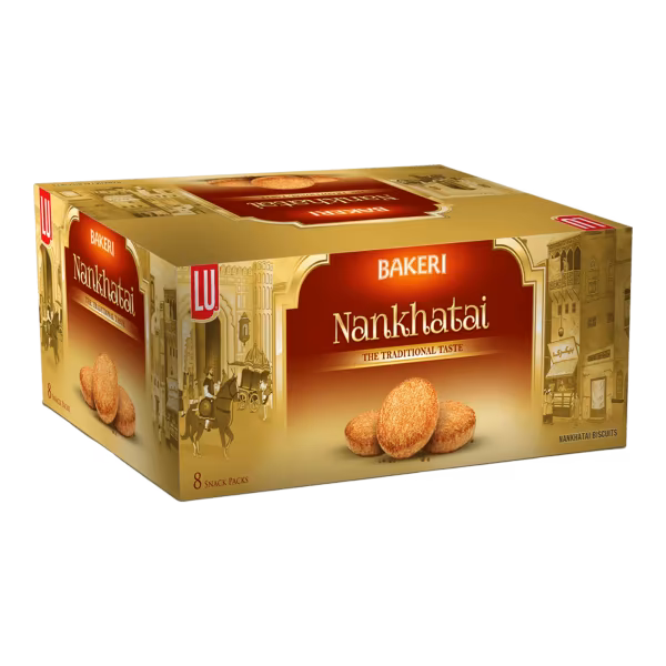 LU Bakeri Nan Khatai offers a traditional, buttery, and crumbly biscuit experience with a rich, aromatic taste. Perfect for pairing with tea or coffee. Buy LU Bakeri Nan Khatai Rs. 40 Box (8 Packs) for a classic and delightful treat!