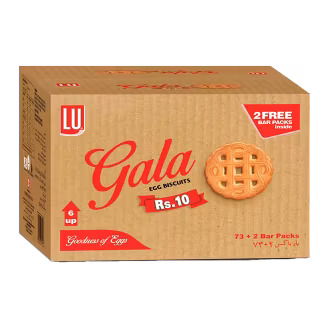 LU Gala offers a light and buttery biscuit with a rich, comforting taste, perfect for everyday snacking. Order LU Gala Rs. 10 (73 Packs) + 2 Bar Pack Free for a delicious tea-time experience!