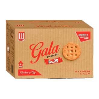 LU Gala biscuits are light, crispy, and mildly sweet, making them a wholesome snack for any time of the day. Perfect for tea-time enjoyment. Get LU Gala Rs. 20 (24 Packs) + 1 Half Roll Free for a satisfying crunch!