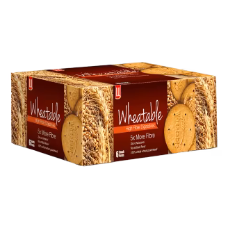 LU Wheatable High Fiber biscuits offer a nutritious and fiber-rich snack with a deliciously crunchy texture. Great for maintaining a healthy diet. Order LU Wheatable High Fiber Rs. 50 Box (6 Packs) for a wholesome and healthy bite!