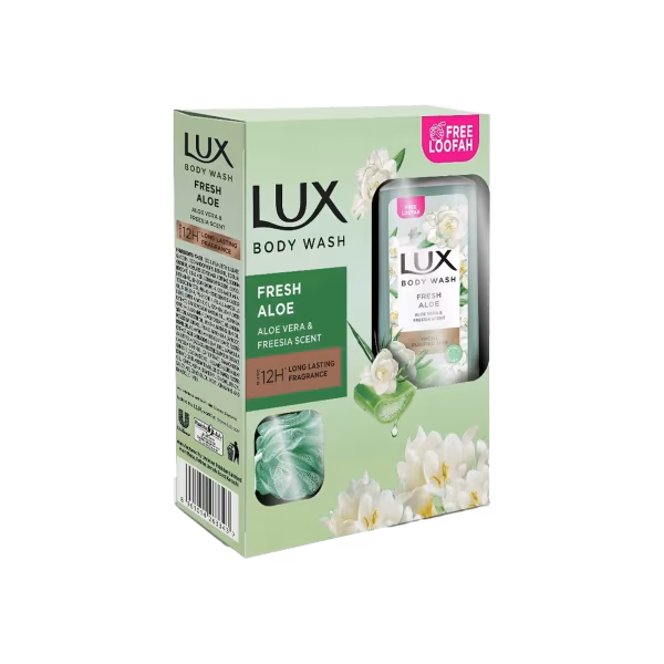 Lux Body Wash Fresh Aloe is infused with aloe vera and freesia for a refreshing shower experience, leaving your skin soft and hydrated. The bottle comes with a free loofah for a luxurious lather. Buy Lux Body Wash Fresh Aloe + Free Loofah 250ml and indulge in smooth, fragrant skin every day!