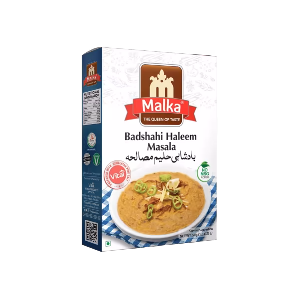 Malka Badshahi Haleem Masala combines bold spices like garam masala, cumin, and cinnamon. Designed to help you recreate the rich, meaty flavor of traditional haleem at home. Shop Malka Badshahi Haleem Masala 50g and make mealtime royal!