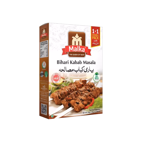 Malka Bihari Kabab Masala blends smoky, tangy, and spicy notes to recreate the street-style flavor of Bihari kababs at home. Ideal for beef, chicken, or mutton marinades. Buy Malka Bihari Kabab Masala 100g and grill with bold tradition!