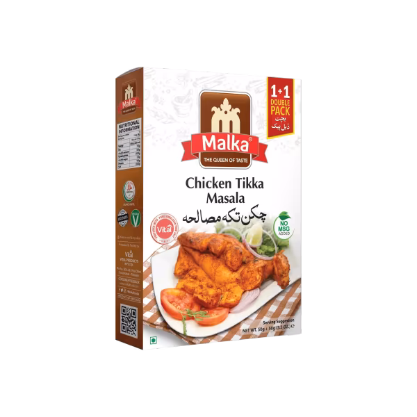 Malka Chicken Tikka Masala delivers the perfect balance of smokiness and spice. Ideal for marinades or grilling, it helps you achieve restaurant-quality tikka at home. Shop Malka Chicken Tikka Masala 100g and fire up the flavor!