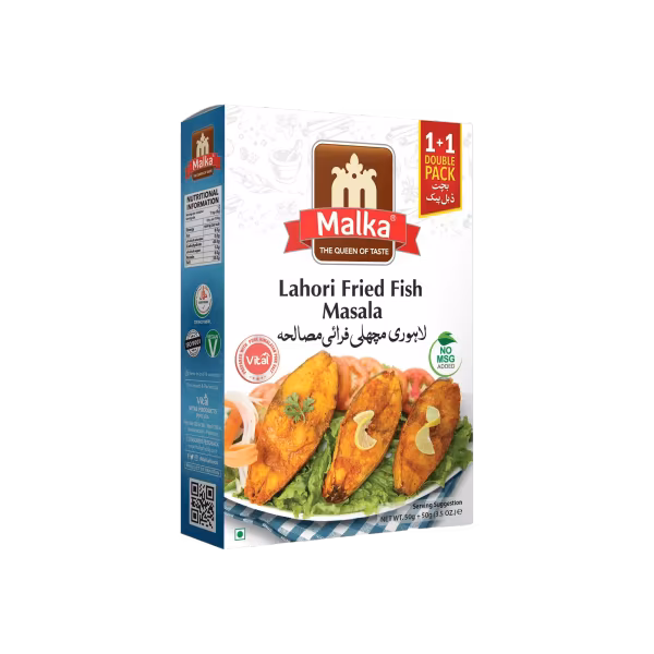 Malka Lahori Fried Fish Masala captures the iconic taste of deep-fried street-style fish with zesty and warm spices. A crunchy, flavorful coating is just one step away. Order Malka Lahori Fried Fish Masala 100g and fry it the Lahori way!