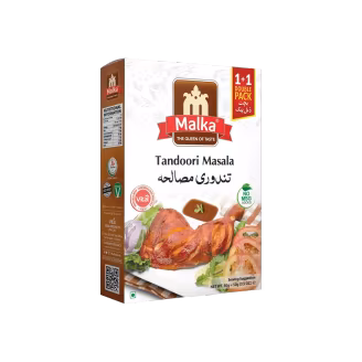 Malka Tandoori Masala enhances grilled meats with a tangy, earthy spice profile. Whether on the BBQ or in the oven, it creates bold, charred flavor every time. Buy Malka Tandoori Masala 100g and grill the desi way!