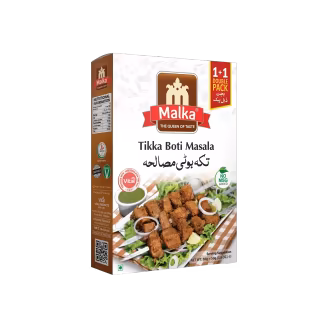 Malka Tikka Boti Masala delivers bold barbecue flavors for perfect grilled or pan-fried tikka. Infused with paprika, garlic, and traditional spices. Tastes like a restaurant dish at home. Shop Malka Tikka Boti Masala 100g and bring BBQ flavor to your kitchen!