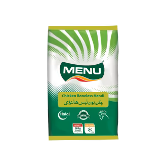 Menu Chicken Boneless Handi features tender, boneless chicken pieces perfect for making flavorful handi curries. The pack is ideal for making hearty, delicious meals. Shop Menu Chicken Boneless Handi 500g and enjoy a flavorful handi experience!