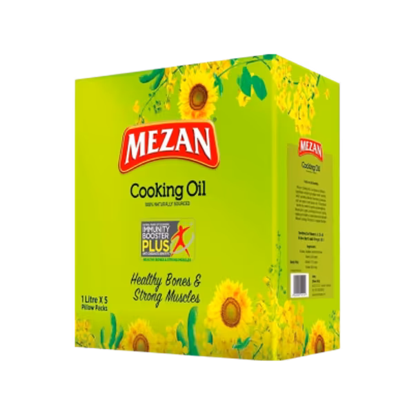 Mezan Cooking Oil is the light and healthy choice for everyday cooking. With its refined formulation, it lets you cook with ease while enhancing the natural flavors of your meals. Perfect for any cuisine, its the ideal cooking companion. Get Mezan Cooking Oil 1L Carton (Pack of 5) for everyday cooking!