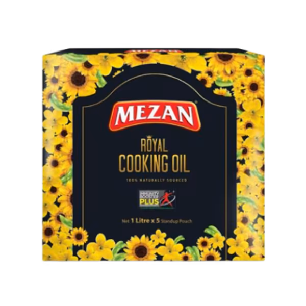 Mezan Royal Cooking Oil ensures purity and enhances the taste of traditional and modern dishes. Serves as a secret ingredient for your perfect meal. Buy Mezan Royal Cooking Oil 1L Carton (Pack of 5) for hassle-free, tasty cooking!