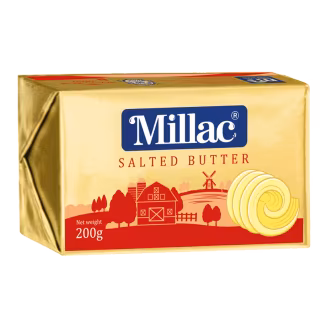 Millac Salted Butter is made from high-quality cream, offering a rich and creamy taste. The pack is perfect for larger households or frequent use. Order Millac Salted Butter 200g Pack and enjoy creamy goodness in every dish!