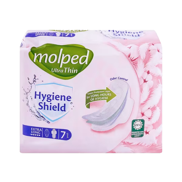 Molped Maxi Thick Pads offer ultra protection with extra thickness. Comfortable, absorbent, and secure. Designed for heavy flow days. Order Molped Maxi Thick Ultra Protection Sanitary Pads (7 Pieces) and feel safe and dry!