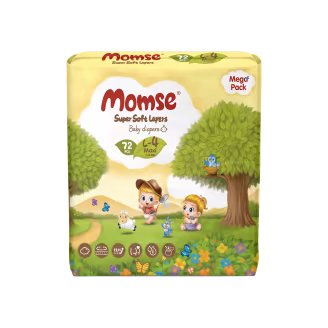 Momse Size 4 Mega Pack ensures your baby stays dry and comfortable throughout the day. The soft, breathable material allows your little one to move freely, while the ultra-absorbent core provides lasting dryness, even during playtime. Buy Momse Size 4 Mega Pack (72 Pieces) and upgrade your baby's comfort!