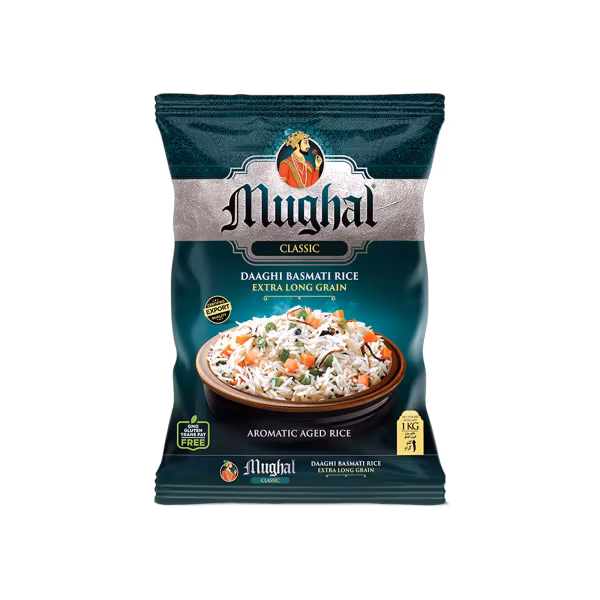 Mughal Classic Rice features extra-long Super Kernel Basmati grains that cook to perfection with a light, fluffy finish. Ideal for biryani or family dinners. Shop Mughal Classic Rice 1kg for premium, long-grain Basmati rice!