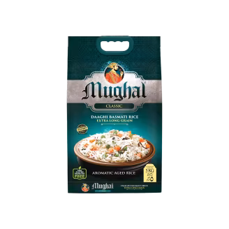 Mughal Classic Rice is a blended Basmati crafted for consistent texture and aroma. Each grain stays separate when cooked, making it perfect for festive dishes. Order Mughal Classic Rice 5kg for reliable, flavorful Basmati rice every day!