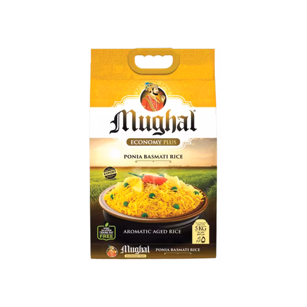 Mughal Economy Plus Rice features long, parboiled 1121 Basmati grains that retain flavor and texture. Great for family meals, festive dishes, or everyday rice. Buy Mughal Economy Plus Rice 5kg for nutritious, fluffy parboiled Basmati rice!
