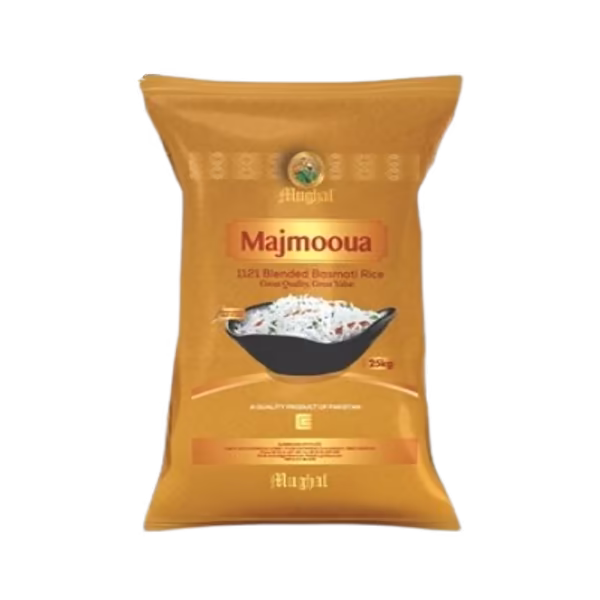 Majmooua 1121 Blended Basmati offers a rich blend of basmati grains with superior taste and texture. Buy Majmooua 1121 Blended Basmati 25kg for an authentic basmati experience!