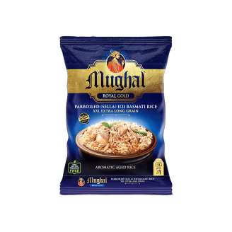 Mughal Royal Gold Rice brings the signature softness and aroma of Steam 1121 Basmati rice to your kitchen. Perfect for special meals or quick, aromatic sides. Shop Mughal Royal Gold Rice 1kg for fluffy, high-quality rice at home!
