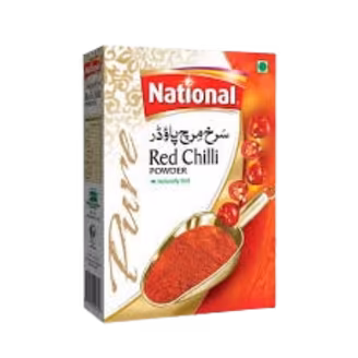 National Chilli Powder is a fiery spice that adds a bold kick and vibrant color, enhancing the flavors of your dishes with just the right amount of spice. Buy National Chilli Powder 50g Pack and spice up your daily meals with that ideal touch of heat!