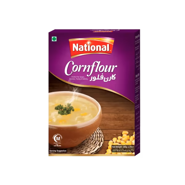 National Cornflour helps you achieve the perfect texture in sauces, gravies, and soups, thickening them smoothly without clumping. Its the key ingredient for silky-smooth dishes. Buy National Cornflour 250gm and enjoy perfect consistency in your cooking, every time!