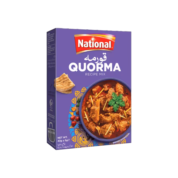 National Quorma Masala is a flavorful spice mix that brings the authentic taste of quorma to your kitchen. Perfect for making that delicious, creamy dish every time. Shop National Quorma Masala 50g Single Pack for classic, creamy quorma!