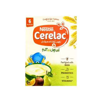 Nestle Cerelac 3-Fruit 350g Pack provides a blend of fruits to delight your babys taste buds while giving them essential nutrition. Buy Nestl Cerelac 3-Fruit 350g Pack online and ensure a healthy diet for your child.