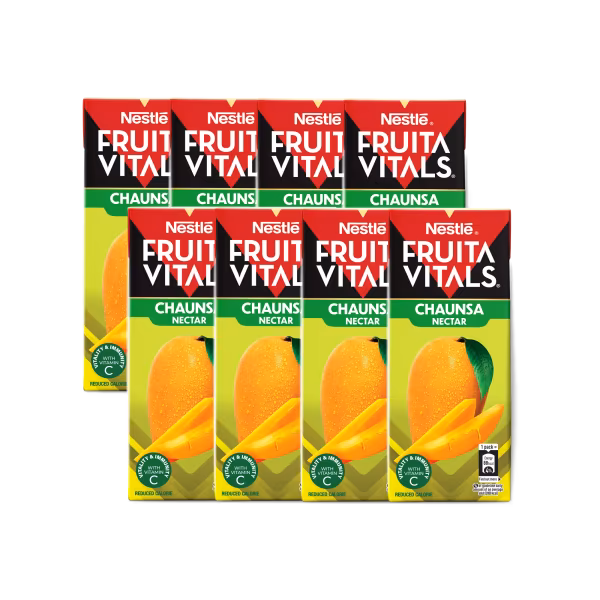 Nestle Fruita Vitals Chaunsa delivers sweet mango flavour in every sip. Made from the beloved Chaunsa variety. Tasty and preservative-free. Get Nestle Fruita Vitals Chaunsa 200ml x 8 and enjoy mango the desi way!