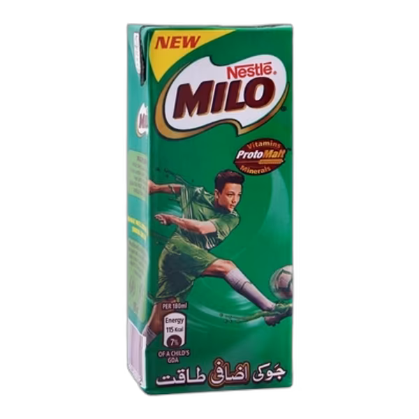 Nestle Milo offers energy-packed malt chocolate drink with essential vitamins. Loved by growing kids and active adults. Delicious hot or cold. Order Nestle Milo 180ml and fuel your active lifestyle!