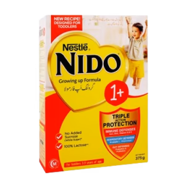 Nestle Nido 1+ is a specially formulated milk powder enriched with essential vitamins and minerals to support children's growth and development. Buy Nestle Nido 1+ 375 gm Pack and nourish your child with the best!