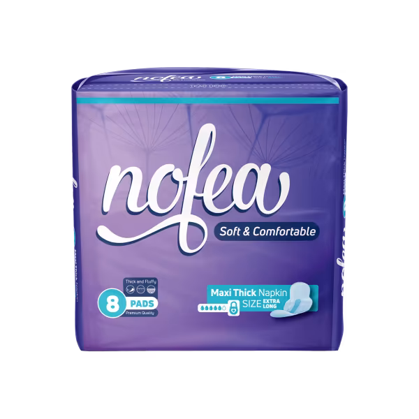 Nofea Regular Pack Maxi Thick Extra Long is designed for extra protection with its maxi-thick material and longer length. Perfect for heavy flow days, it guarantees comfort and peace of mind. Order Nofea Regular Pack Maxi Thick Extra Long (8 Pieces) for ultimate comfort and absorbency!
