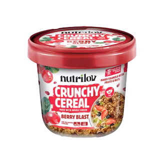 Nutrilov Crunchy Cereal Berry Blast is a vibrant mix of toasted oats and real berry flavorhigh in fiber and antioxidants. Perfect for breakfast or a snack. Shop Nutrilov Crunchy Cereal Berry Blast Rs. 350 Cup online and enjoy a bowl full of flavor and crunch.