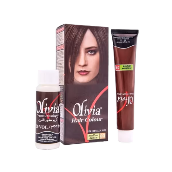 Olivia Hair Color Medium Brown provides a rich, warm color that blends effortlessly with your natural shade. The nourishing formula ensures your hair feels soft and shiny after every application. Buy Olivia Hair Color 03 Medium Brown 50ml for a beautiful, vibrant medium brown hue!