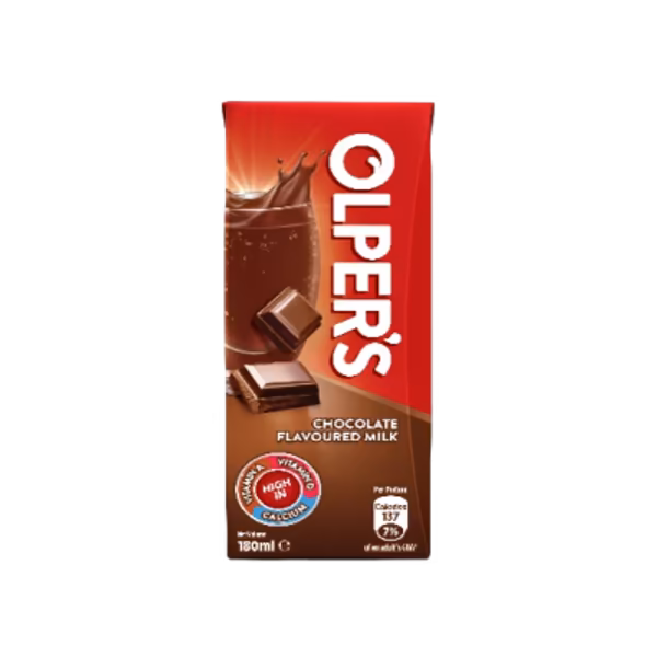 A rich and creamy chocolate-flavored milk, perfect for an energy boost. Buy Olper's Chocolate Flavoured Milk 180ml for a delicious treat!