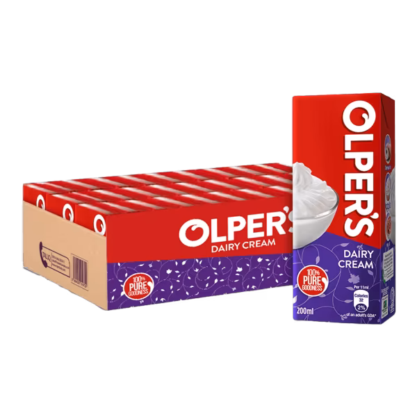 Olper's Cream adds rich, velvety texture to desserts, coffee, and recipes. Made from quality milk with a smooth finish. A creamy touch for every dish. Buy Olper's Cream 200ml Carton (24 Pieces) and make meals luxurious!