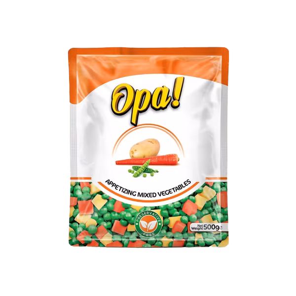 OPA Appetizing Mixed Vegetables are a colorful blend of fresh vegetables, perfect for stir-fries, soups, or side dishes. This pack is a quick and convenient way to add nutrition and flavor to your meals. Buy OPA Appetizing Mixed Vegetables 500g Pack and add fresh veggies to your dishes!
