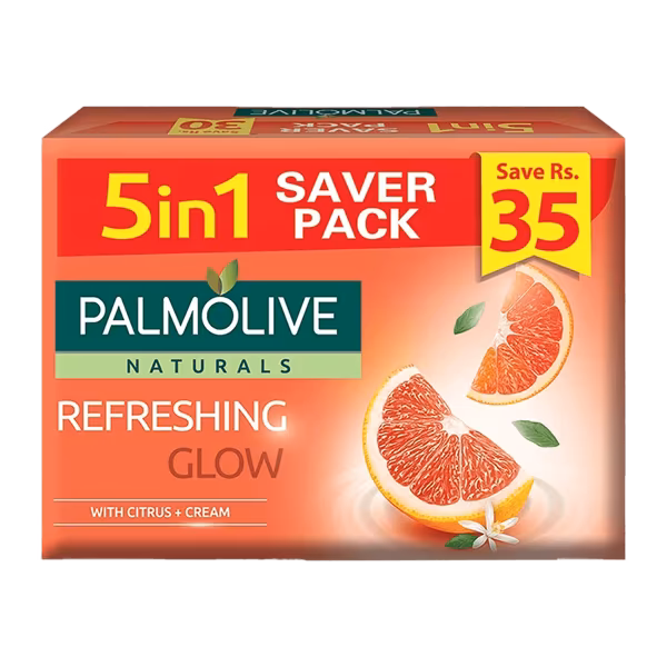 Palmolive Refreshing Glow Soap cleanses and nourishes your skin with a refreshing glow. The soap bars come in a pack of 5, offering long-lasting freshness and softness with every wash. Buy Palmolive Refreshing Glow Soap 98g (Pack of 5) and enjoy soft, glowing skin with every bath!