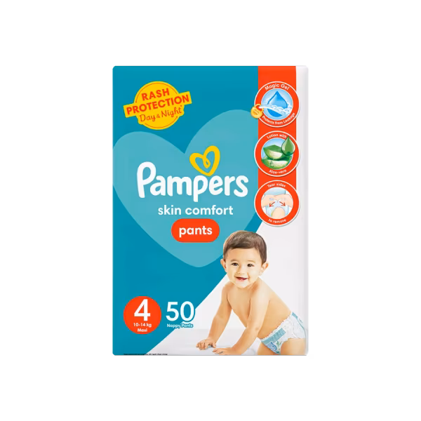 Pampers Baby Pants Size 4 Mega Pack ensures a flexible, secure fit with superior leak protection, so your little one can play, crawl, and explore without interruptions. Buy Pampers Baby Pants Size 4 Mega Pack (50 Pieces) for long-lasting dryness!
