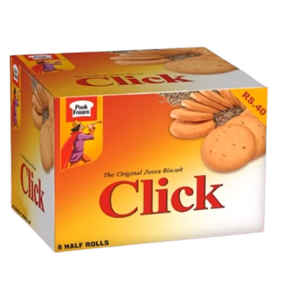 Peek Freans Click Zeera Biscuits combine crispy chocolate shells with creamy filling. A favourite sweet treat for kids and adults alike. Order Peek Freans Click Zeera Biscuits Box Rs. 40 (Pack x 8) and snack on chocolaty fun!