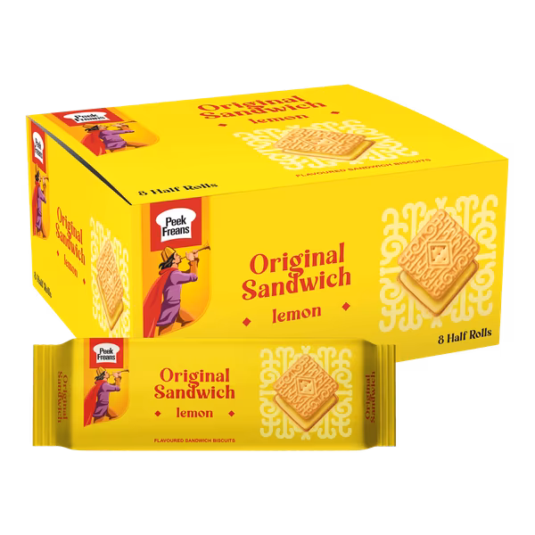 Peek Freans Lemon Sandwich Biscuits bring a burst of tangy lemon flavor between crispy biscuits, offering a unique and refreshing taste. Buy Peek Freans Lemon Sandwich Biscuits Rs. 40 Box (8 Packs) for a zesty snacking experience!