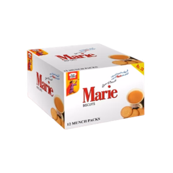 Peek Freans Marie Biscuits offer a light, crispy texture with a mildly sweet flavor, making them an ideal tea-time snack. A timeless classic loved by all. Buy Peek Freans Marie Biscuits Rs. 30 Box (12 Packs) for a delicious and wholesome treat!