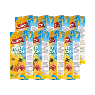 Quice Juice Perfect Fruit Punch offers a tropical blend of multiple fruits for a refreshing and vibrant taste. Bursting with natural flavor, it's a favorite for summer and everyday hydration. Buy Quice Juice Perfect Fruit Punch 200ml x 8 and refresh with fruity fusion!