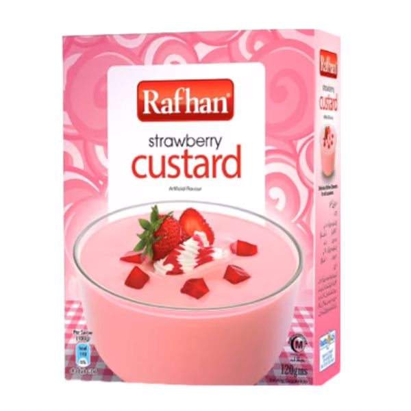 Rafhan Custard Strawberry combines the creamy richness of custard with the juicy, fresh sweetness of strawberries. A perfect dessert to end your meal or enjoy as a refreshing snack. Get Rafhan Custard Strawberry 275g and savor every spoonful!