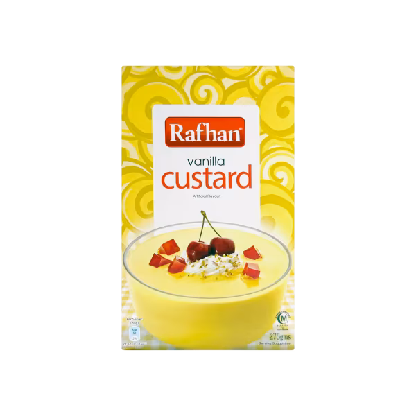 Rafhan Custard Vanilla is a velvety, rich dessert that wraps you in the comforting warmth of vanilla. Smooth, indulgent, and irresistibly delicious, its the perfect treat to elevate any meal. Buy Rafhan Custard Vanilla 275g and experience pure vanilla perfection in every spoonful!