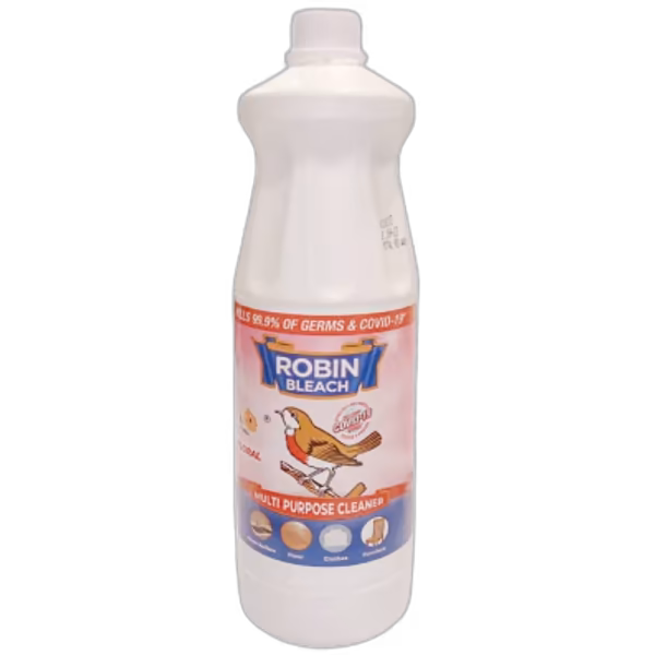 Robin Bleach Floral is a powerful cleaner that whitens, disinfects, and removes tough stains with ease. Its refreshing floral fragrance keeps your home hygienic and pleasant. Order Robin Bleach 450ml Floral for sparkling clean freshness!
