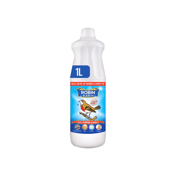 Robin Bleach in the original formula is a powerful disinfectant, ideal for cleaning and sanitizing surfaces while providing a fresh, clean smell. The bottle ensures prolonged use. Buy Robin Bleach 900ml Original for an all-purpose cleaning solution!